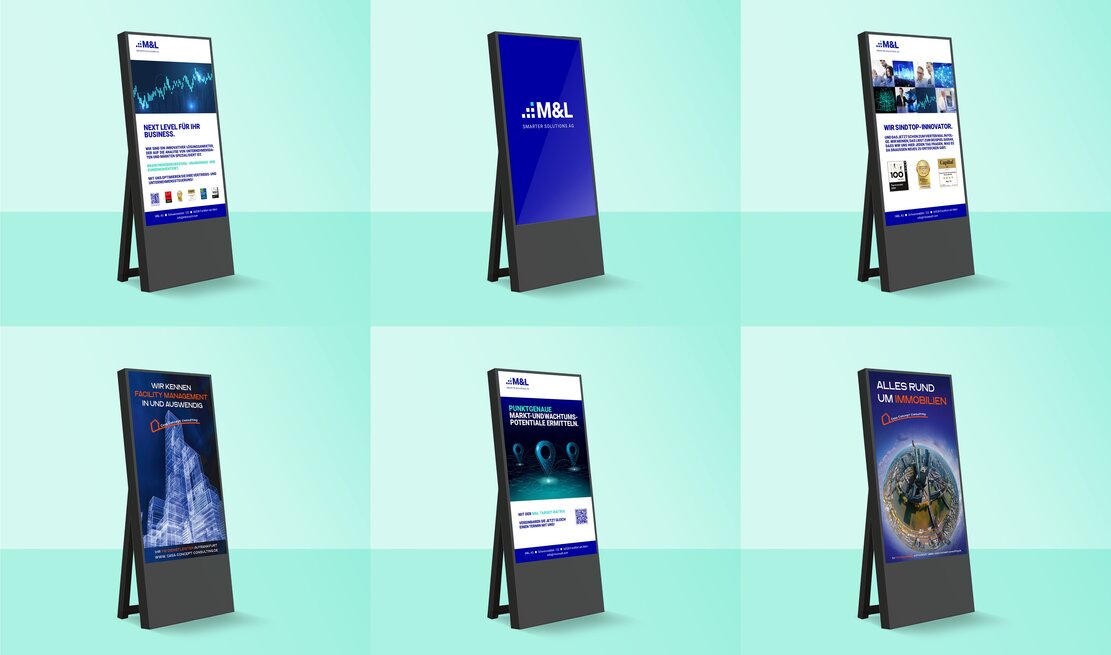 Der M&L Smart Companion ist nicht nur ein digitales Präsentationsmodul, wie sie unter dem Begriff Digital Signage bekannt sind, er kann viel mehr und unterstützt Sie bei Ihrem professionellem Auftritt auf Messen, in Verkaufsräumen, Empfangshallen und überall dort, wo sich Ihr Unternehmen hervorheben möchten. Bilder, Texte und Videos inkl. Ton, können flexibel eingesetzt werden. Egal ob Sie Ihre Botschaft zeitgleich an mehreren Standorten oder verschiedene Botschaften an unterschiedlichen Standorten präsentieren möchten. Der M&L Smart Companion lässt sich von überall aus individuell steuern.