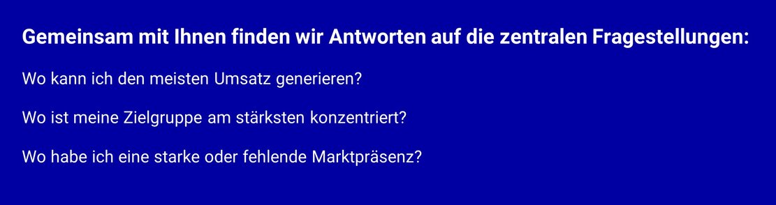 Anhand solcher raumbezogener Informationen ist es möglich, neue Potenziale zu erschließen und sich noch besser am Markt zu positionieren.